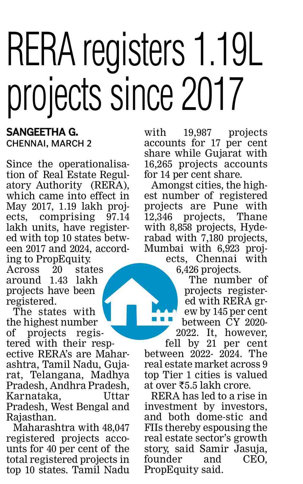 Over 97 lakh real estate units registered under RERA in India’s top 10 states in 8 years: PropEquity